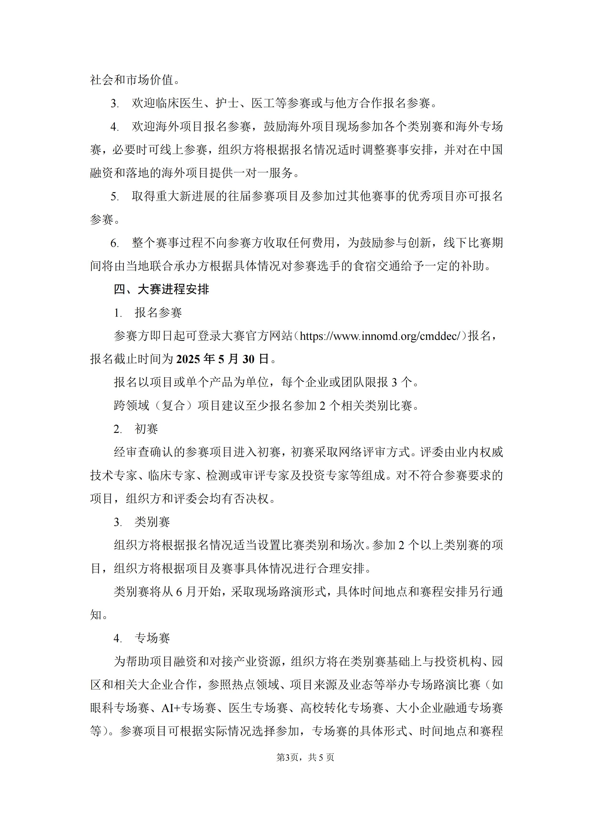 参赛方即日起可登录大赛官方网站(医疗器械创新网网://lznkyynj.com/cmddec/)报名,报名截止时间为2025年5月30日。